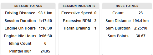The Performance Report is a report where you are able to view a driver's performance over their shift from either the Default Ruleset or a custom ruleset you have created. This report is created from the engine data that is collected from the vehicle